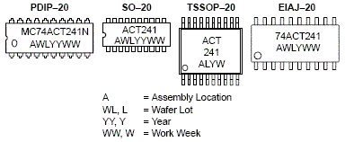 The MC74ACT241 is an octal buffer and line driver designed to be employed as a memory address driver, clock driver and bus oriented transmitter or receiver which provides improved PC board density.