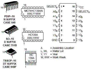 The MC74HC139A is identical in pinout to the LS139. The device inputs are compatible with standard CMOS outputs; with pullup resistors, they are compatible with LSTTL outputs.