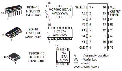The MC74HC157A is identical in pinout to the LS157. The device inputs are compatible with standard CMOS outputs; with pullup resistors, they are compatible with LSTTL outputs.