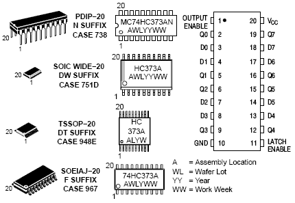 The MC74HC373A is identical in pinout to the LS373. The device inputs are compatible with standard CMOS outputs; with pullup resistors, they are compatible with LSTTL outputs.