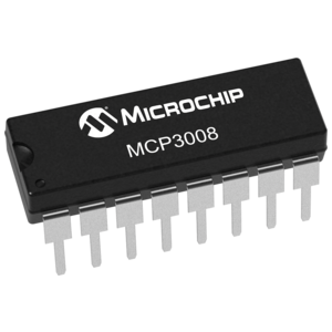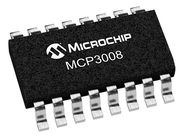 The MCP3008 10-bit Analog-to-Digital Converter (ADC) combines high performance and low power consumption in a small package, making it ideal for embedded control applications. The MCP3008 features a successive approximation register (SAR) architecture and an industry-standard SPI serial interface, allowing 10-bit ADC capability to be added to any PIC® microcontroller. The MCP3008 features 200k samples/second, 8 input channels, low power consumption (5nA typical standby, 425µA typical active), and is available in 16-pin PDIP and SOIC packages. Applications for the MCP3008 include data acquisition, instrumentation and measurement, multi-channel data loggers, industrial PCs, motor control, robotics, industrial automation, smart sensors, portable instrumentation and home medical appliances.