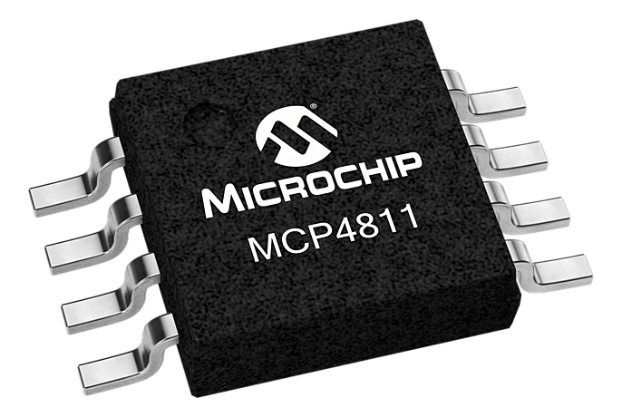 MCP4811 is a single channel 10-bit Digital-to-Analog converter (DAC) with internal voltage reference. This device offers high accuracy and low power consumption, and is available in various packages. Communication with the device is accomplished via a simple serial interface using SPI protocols.