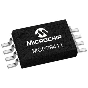 The MCP79411 general purpose I2C™Compatible real-time clock/calendar (RTCC) is highly integrated with nonvolatile memory and advanced features normally found in higher priced devices. These features include a battery switchover circuit for backup power, a timestamp to log power failures and digital trimming for accuracy. Using a low-cost 32.768 kHz crystal or other clock source, time is tracked in either a 12-hour or 24-hour format with an AM/PM indicator and timing to the second, minute, hour, day of the week, day, month and year. As an interrupt or wakeup signal, a multifunction open drain output can be programmed as an Alarm Out or as a Clock Out that supports 4 selectable frequencies. In addition, non-volatile memory is included along with a Unique ID in a locked section of EEPROM that is factory programmed with an EUI-48 MAC Address.