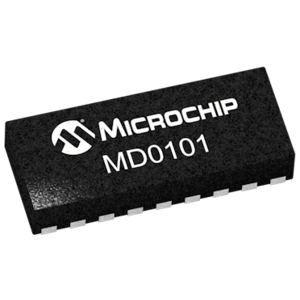 MD0101 is a four channel, high voltage, current limiting protection device. It is designed to protect a low noise receiver from the high voltage transmit pulses in ultrasound applications and is commonly referred to as a T/R (transmit and receive) switch. Each channel has three terminals; Tx, Rx, and RGND. The analog switch terminals are Tx and Rx. Rx has integrated clamping diodes to RGND to protect the receiver against high voltages. Voltages greater than ±0.6V will start forward biasing the clamp diodes to RGND.The MD0101 can be considered as a normally closed switch with a typical switch resistance of 15O, allowing small signals to pass. Once the voltage drop across the switch exceeds a nominal value of ±1.0V, the device will start to turn off. In the off state, the MD0101 can withstand up to ±100V across its terminals. A small amount of current, 200µA, is allowed to flow through.The MD0101 is not limited to just ultrasound applications. It can also be used for resettable fuses to protect power lines, output short circuit protection, and data acquisition. The MD0101 is available in an 18-Lead, 5x5mm DFN package as a four channel device for high density requirements.