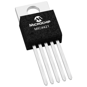 MIC4421A and MIC4422A MOSFET drivers are rugged, efficient, and easy to use. The MIC4421A is an inverting driver, while the MIC4422A is a non-inverting driver.Both versions are capable of 9A (peak) output and can drive the largest MOSFETs with an improved safe operating margin. The MIC4421A/4422A accepts any logic input from 2.4V to VS without external speed-up capacitors or resistor networks. Proprietary circuits allow the input to swing negative by as much as 5V without damaging the part. Additional circuits protect against damage from electrostatic discharge.MIC4421A/4422A drivers can replace three or more discrete components, reducing PCB area requirements, simplifying product design, and reducing assembly cost.Modern Bipolar/CMOS/DMOS construction guarantees freedom from latch-up. The rail-to-rail swing capability of CMOS/DMOS helps ensure adequate gate voltage to the MOSFET during power up/down sequencing. Since these devices are fabricated on a self-aligned process, they have very low crossover current, run cool, use little power, and are easy to drive.