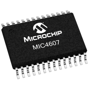 The MIC4607 is an 85V, three-phase MOSFET driver. The MIC4607 features a fast (35ns) propagation delay time and 20ns driver rise/fall times for a 1nF capacitive load. TTL inputs can be separate high- and low-side signals or a single PWM input with high and low drive generated internally. High- and low-side outputs are guaranteed to not overlap in either mode. The MIC4607 includes overcurrent protection as well as a high-voltage internal diode that charges the high-side gate drive bootstrap capacitor.A robust, high-speed, and low-power level shifter provides clean level transitions to the high-side output. The robust operation of the MIC4607 ensures that the outputs are not affected by supply glitches, HS ringing below ground, or HS slewing with high-speed voltage transitions. Undervoltage protection is provided on both the low-side and high-side drivers. The MIC4607 is available in a both a 28-pin 4mm ? 5mm QFN and 28-pin TSSOP package with an operating junction temperature range of -40°C to +125°C.