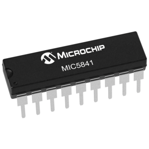 Using BiCMOS technology, the MIC5841/5842 integrated circuits were fabricated to be used in a wide variety of peripheral power driver applications. The devices each have an eight-bit CMOS shift register, CMOS control circuitry, eight CMOS data latches, and eight bipolar current-sink Darlington output drivers.These two devices differ only in maximum voltage ratings. The MIC5842 offers premium performance with a minimum output breakdown voltage rating of 80V (50V sustaining). The drivers can be operated with a split supply where the negative supply is down to -20V.The 500 mA outputs, with integral transient-suppression diodes, are suitable for use with lamps, relays, solenoids and other inductive loads.These devices have improved speed characteristics. With a 5V logic supply, they will typically operate faster than 5 MHz. With a 12V supply, significantly higher speeds are obtained. The CMOS inputs are compatible with standard CMOS, PMOS, and NMOS logic levels. TTL or DTL circuits may require the use of appropriate pull-up resistors. By using the serial data output, the drivers can be cascaded for interface applications requiring additional drive lines.The MIC5840 family is available in DIP, PLCC, and SOIC packages. Because of limitations on package power dissipation, the simultaneous operation of all drivers at maximum rated current might require a reduction in duty cycle. A copper-alloy lead frame provides for maximum package power dissipation.
