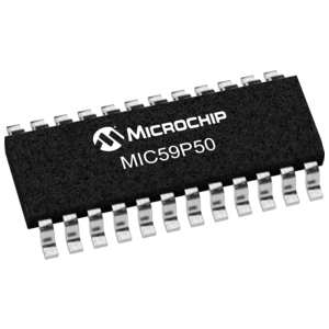 The MIC59P50 parallel-input latched driver is a high-voltage (80V), high-current (500mA) integrated circuit comprised of eight CMOS data latches, a bipolar Darlington transistor driver for each latch, and CMOS control circuitry for the common CLEAR, STROBE, and OUTPUT ENABLE functions. Similar to the MIC5801, additional protection circuitry supplied on this device includes thermal shutdown, under voltage lockout (UVLO), and over-current shutdown.The bipolar/MOS combination provides an extremely low-power latch with maximum interface flexibility. The MIC59P50 has open-collector outputs capable of sinking 500mA and integral diodes for inductive load transient suppression with a minimum output breakdown voltage rating of 80V above VEE (50V sustaining). The drivers can be operated with a split supply, where the negative supply is down to -20V and may be paralleled for higher load current capability.With a 5V logic supply, the MIC59P50 will typically operate at better than 5MHz. With a 12V logic supply, significantly higher speeds are obtained. The CMOS inputs are compatible with standard CMOS, PMOS, and NMOS circuits. TTL circuits may require pull-up resistors.Each of these eight outputs has an independent over-current shutdown at 500 mA. Upon current shutdown, the affected channel will turn OFF and the flag will go low until VDD is cycled or the ENABLE/RESET pin is pulsed high. Current pulses less than 2µs will not activate over-current shutdown. Temperatures above 165°C will shut down the device and activate the open collector FLAG output at pin 1. The UVLO circuit disables the outputs at low VDD; hysteresis of 0.5V is provided.