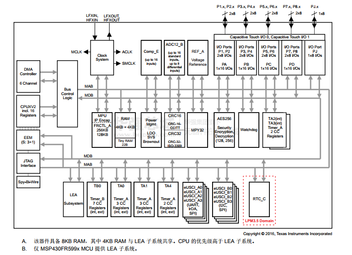 要获得完整的模块说明,请参见《MSP430FR58xx,MSP430FR59xx,MSP430FR68xx 和 MSP430FR69xx 系列用户指南》
