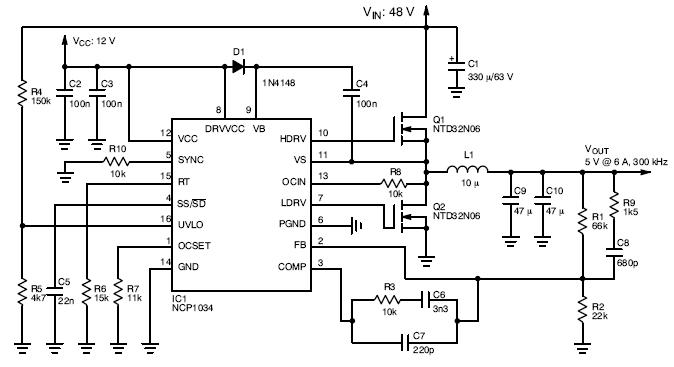 NCP1034100V同步控制器应用电路