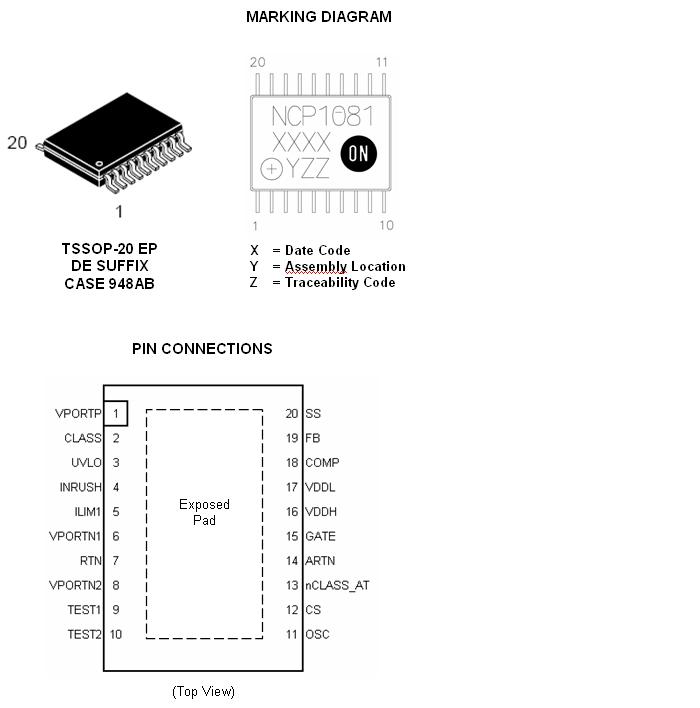 The NCP1081 is a member of ON Semiconductor's high power HIPO™ Power over Ethernet Powered Device (PoE-PD) product family and represents a robust, flexible and highly integrated solution targeting demanding medium and high power Ethernet applications. It combines in a single unit an enhanced PoE-PD interface fully compliant with the IEEE 802.3af and IEEE 802.3at (Draft 3.0) specifications and a flexible and configurable DC-DC converter controller.