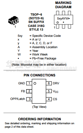 Over Power Protection (OPP) is a difficult exercise especially when no-load standby requirements drive the converter specifications. The ON proprietary integrated OPP lets you harness the maximum delivered power without affecting your standby performance simply via two external resistors. A latched Over Voltage Protection (OVP) is combined on the same pin. For ease of implementation, an auto-recovery OVP also monitors the Vcc line. These features offer an efficient protection in case of optocoupler failure or adverse open loop operation.