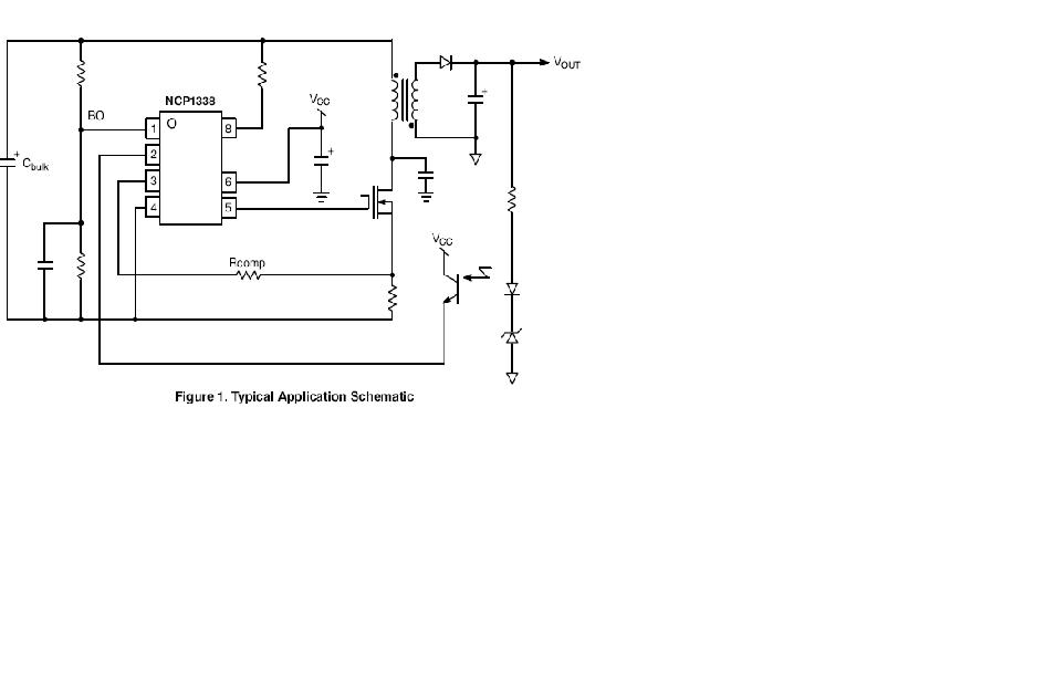 The NCP1338 combines a true current mode modulator and a demagnetization detector which ensures full Borderline/Critical Conduction Mode in any load/line conditions together with minimum drain voltage switching (Quasi-Resonant operation). The transformer core reset detection is done internally, without using any external signal, due to the Soxyless concept. The frequency is internally limited to 130 kHz, preventing the controller from operating above the 150 kHz CISPR-22 EMI starting limit.