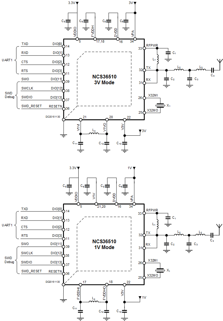 The NCS36510 is a low power, fully integrated, System on Chip that integrates a 2.4 GHz IEEE 802.15.4−2006 compliant transceiver, ARM® Cortex®−M3 microprocessor, RAM and FLASH memory, a true random number generator, and multiple peripherals to support design of a complete and secure wireless network with minimal external components.