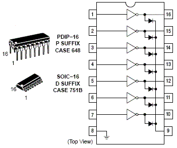 The seven NPN Darlington connected transistors in these arrays are well suited for driving lamps, relays, or printer hammers in a variety of industrial and consumer applications. Their high breakdown voltage and internal suppression diodes insure freedom from problems associated with inductive loads. Peak inrush currents to 500 mA permit them to drive incandescent lamps.