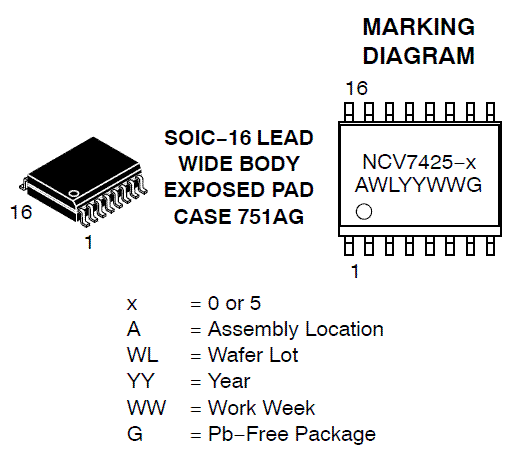 The NCV7425 is a fully featured local interconnect network (LIN) transceiver designed to interface between a LIN protocol controller and the physical bus.
