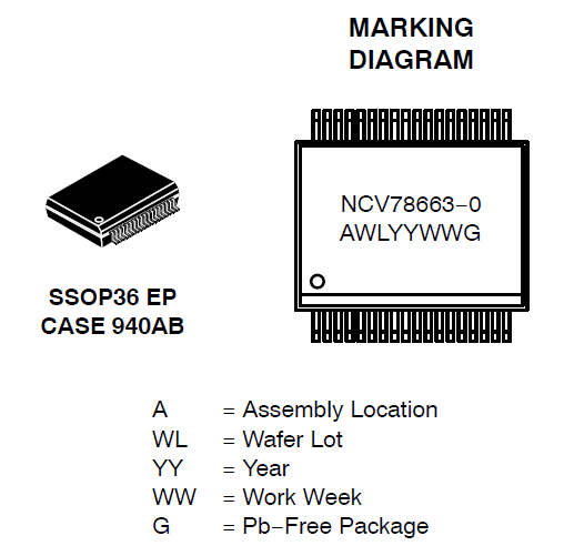 The NCV78663 is a single-chip and high efficient smart Power ballast and Dual LED Driver designed for automotive front lighting applications like high beam, low beam, daytime running light (DRL), turn indicator, fog light, static cornering, and so on.