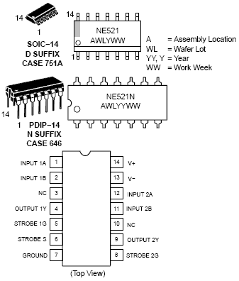 NE521 is a high-speed, dual-differential, comparator/sense amp.