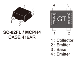 This RF transistor is designed for low noise amplifier applications. MCPH package is suitable for use under high temperature environment because it has superior heat radiation characteristics. This RF transistor is AEC-Q101 qualified and PPAP capable for automotive applications.