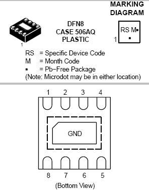 NUF4401MN is a 4 line EMI filter array for wireless applications.It offers greater than -35 dB attenuation at frequencies from 900 MHz to 2.4 GHz.This device also offers ESD protection - clamping transients from static discharges and ESD protection is provided across all capacitors.