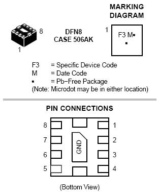 This device is a 4 line EMI Filter Array for wireless applications.The NUF4403MN provides greater than -35 dB attenuation at frequencies from 800 MHz to 2.2 GHz.It also offers ESD protection-clamping transients from static discharges.ESD protection is provided across all capacitors.