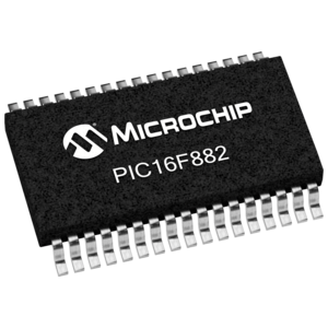 This powerful yet easy-to-program (only 35 single word instructions) CMOS FLASH-based 8-bit microcontroller packs Microchip's powerful PIC® architecture into a 28 pin package.The PIC16F882 features 128 bytes of EEPROM data memory, self programming, an ICD, 2 Comparators, 11 channels of 10-bit Analog-to-Digital (A/D) converter, 1 capture/compare/PWM and 1 Enhanced capture/compare/PWM functions, a synchronous serial port that can be configured as either 3-wire Serial Peripheral Interface (SPI™) or the 2-wire Inter-Integrated Circuit (I²C™) bus and an Enhanced Universal Asynchronous Receiver Transmitter (EUSART). All of these features make it ideal for more advanced level A/D applications in automotive, industrial, appliances or consumer applications.