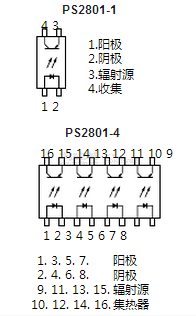 该PS2801-1和PS2801-4是含有在一个GaAs发光二极管和NPN光耦合隔离器