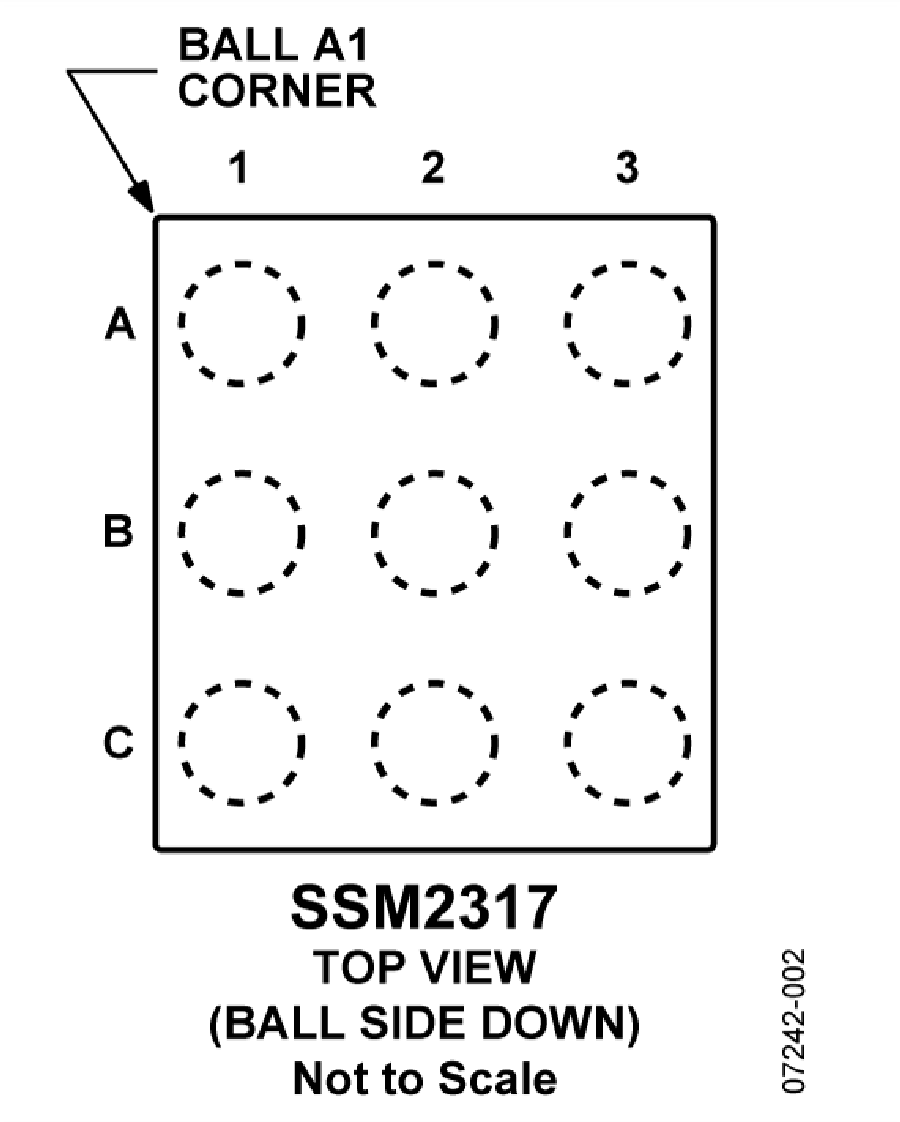 SSM2317的默认增益为18 dB,但用户可以利用一对外部电阻来降低该增益(请参考增益部分)。SSM2317的工作温度范围为-40°C~ +85°C。它内置过热关断与输出电流短路保护功能。采用1.5 mm × 1.5 mm 9引脚WLCSP封装。