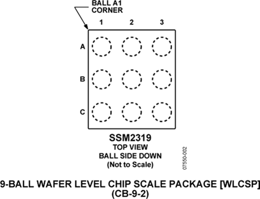 SSM2319的额定温度范围为−40°C至+85°C工业温度范围。它还内置热关断和输出短路保护功能,采用9引脚、1.5 mm x 1.5 mm晶圆级芯片规模封装(WLCSP)。