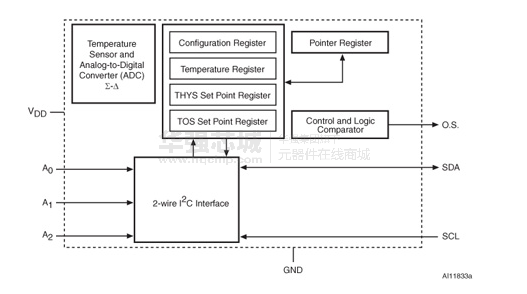 stds75的操作电源电压从2.7 V到5.5 V操作在3.3 V的电源电流通常是指定的,(125μ一)