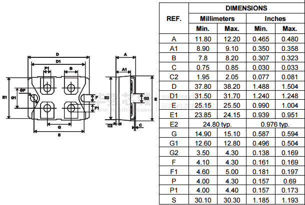 适用于开关电源和高频直流-直流转换器的双功率肖特基整流器。