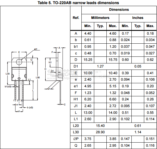 包装采用TO - 220AB,TO - 220AB窄导致i2pak和D2PAK,此设备是用于高频逆变器。