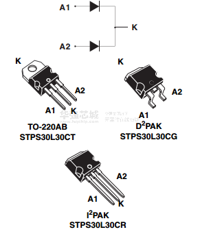 双中心抽头肖特基整流器适用于开关电源和高频直流-直流转换器。