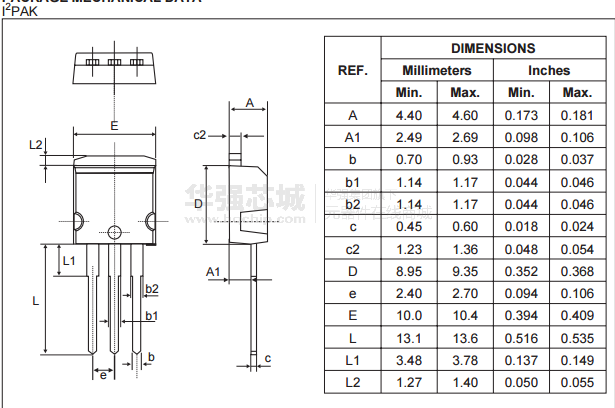 采用D2PAK封装,i2pak和TO - 220AB这装置是使用低电压,高频率逆变器,免费续流和极性保护中的应用。