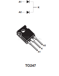 Packaged in TO247, this device is intended for use in low voltage, high frequency inverters, free-wheeling and polarity protection applications.