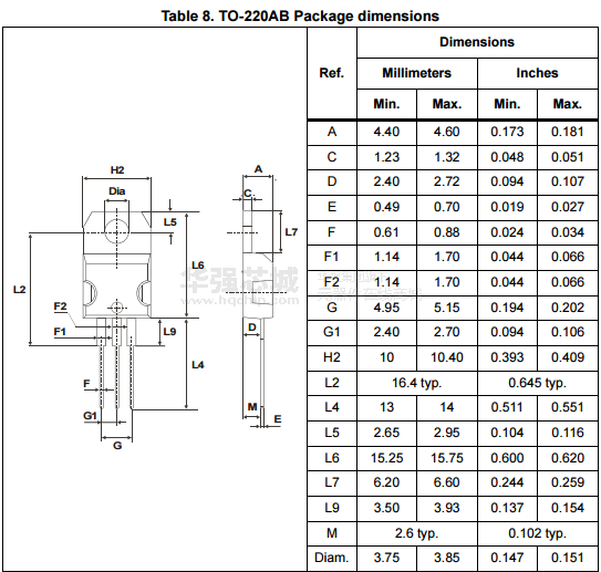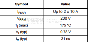 包装采用TO - 220AB,D2PAK,TO - 220FPAB和i2pak,本装置适用于低电压,高频率逆变器,免费续流和极性保护中的应用。
