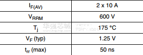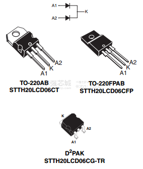 stth20lcd06c采用ST Turbo2超技术。该装置特别适合于开关电源与交错PFC工作。