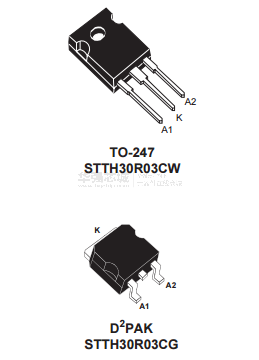 This TURBOSWITCH family, which drastically cuts losses in associated MOSFET when run at high dIF/dt, is suited for HF OFF-Line SMPS and DC/DC converters.