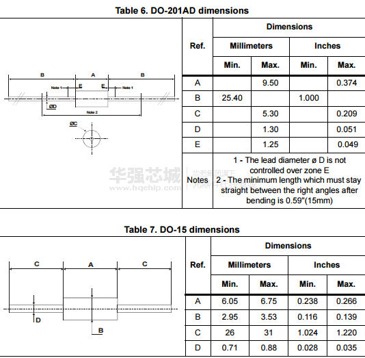 Packaged in DO-201AD, DO-15, and SMC, this device is intended for use in low voltage, high frequency inverters, free wheeling and polarity protection.