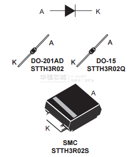 stth3r02采用ST公司的新的200 V平面Pt掺杂技术,它特别适合用于开关模式的基极驱动晶体管电路。