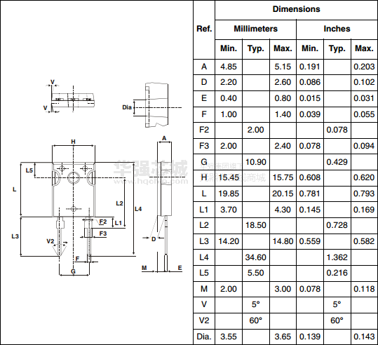 可在通过孔封装,这种装置适用于低电压,高频率逆变器,免费续流和极性保护。