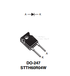The STTH60R04 series uses ST's new 400 V planar Pt doping technology. The STTH60R04 is specially suited for switching mode base drive and transistor circuits.