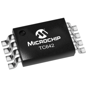 The TC642 is a switch mode fan speed controller for use with brushless DC motors. Temperature proportional speed control is accomplished using pulse width modulation. A thermistor (or other voltage output temperature sensor) connected to the VIN input furnishes the required control voltage of 1.25Vto 2.65V (typical) for 0% to 100% PWM duty cycle. Minimum fan speed is set by a simple resistor divider on the VMIN input. An integrated Start-Up Timer ensures reliable motor start-up at turn-on, coming out of Shutdown Mode, or following a transient fault.A logic low applied to VMIN, pin 3, causes fan shutdown.The TC642 also features Microchip Technology's proprietary FanSense™ technology for increasing system reliability.In normal fan operation, a pulse train is present at SENSE, pin 5, indicating normal operation. A missing-pulse detector monitors this pin during normal fan operation. A stalled, open, or unconnected fan causes the TC642 to trigger its start-up timer once. If the fault persists, the FAULT output goes low, and the device is latched in its Shutdown Mode. FAULT is also asserted if the PWM reaches 100%