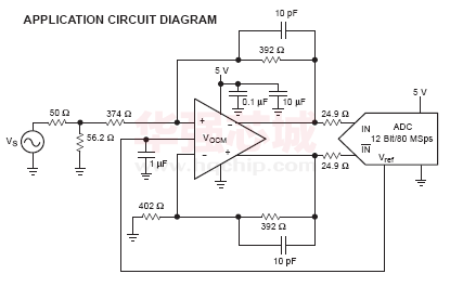 宽带、低失真、全差动放大器,THS4500-EP