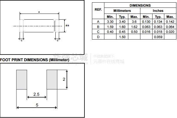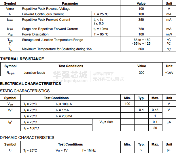具有非常低的导通电压和快速开关的硅二极管的一般用途金属。